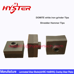 We are a leading ISO9001:2015 certified manufacture in China producing Bi-metallic wear blocks/plates,Chocky bars,Wear Buttons,Sugar Cane Shredder hammer tips/knife edges(white iron+mild steel,63HRC), Overlay wear plates,wear parts&Ni-hard castings etc.